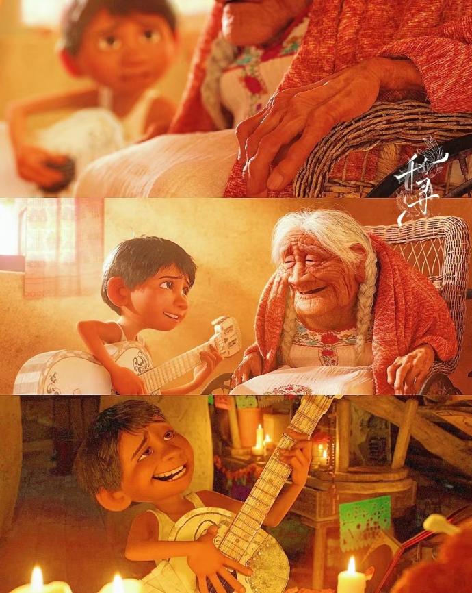 死亡往往被籠罩著傷感的情思,本片卻以一種新穎的形式溫柔對(duì)待往生者,冥靈之境充斥著飽滿的音樂(lè)狂歡,直面死亡的豁達(dá)勇敢,對(duì)珍愛(ài)之人的情感聯(lián)絡(luò)是生者鐫刻在心頭記憶的守護(hù)者,米格為祖母彈唱著熟悉的歌謠,夢(mèng)想永遠(yuǎn)不會(huì)與愛(ài)為敵。