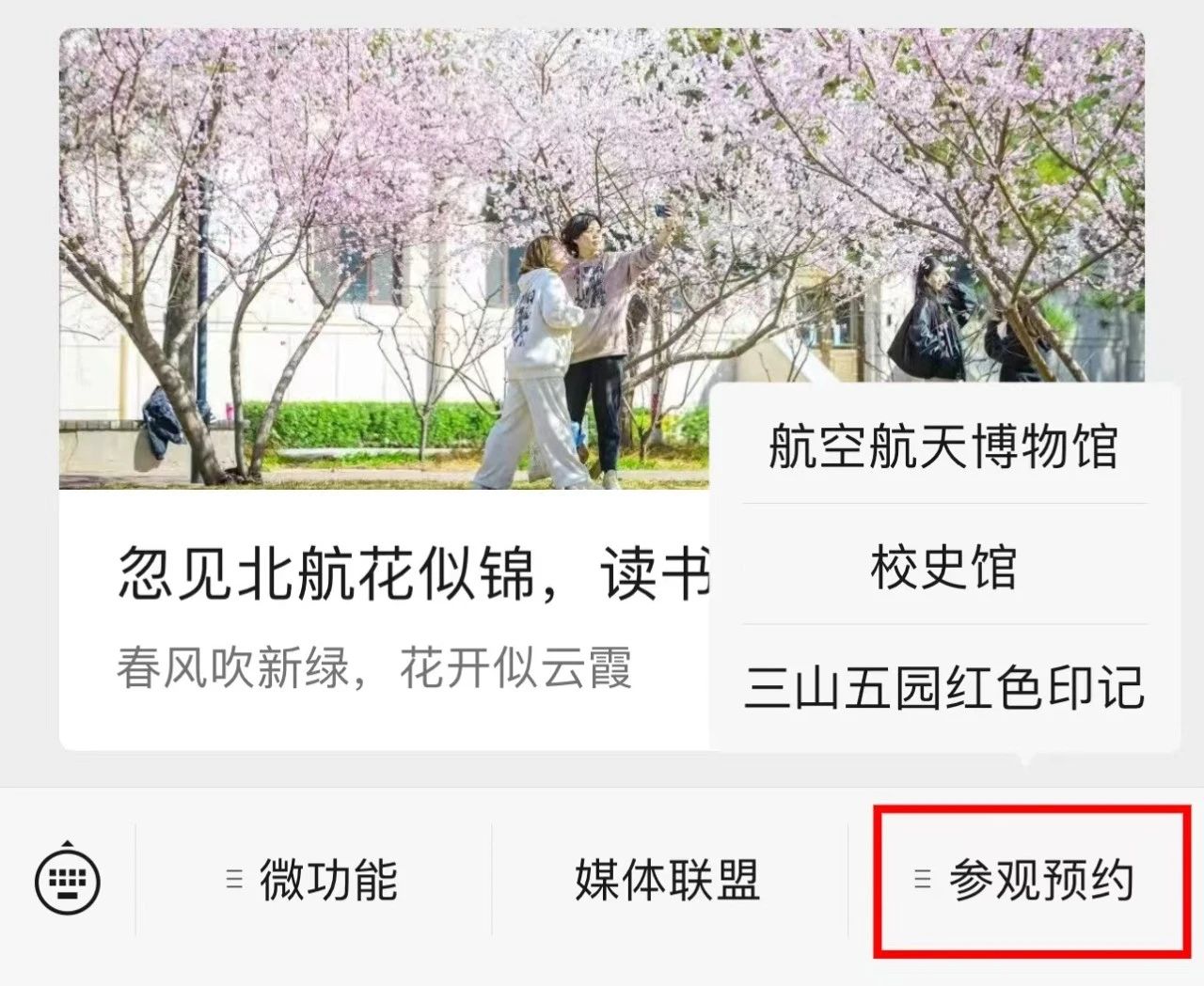 社會團體和個人可在“北京航空航天大學”官方微信公眾號底邊欄參觀預約“三山五園紅色印記”北航專題展處預約相關日期參觀,或直接掃描下列二維碼填寫預約信息。