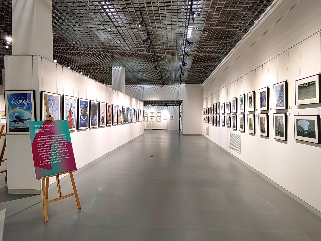 本次聯展以“星夢高遠,美潤啟航”為主題,包括《海報設計與制作》《攝影藝術鑒賞與基礎》《透視與空間》《電影鑒賞與分析》《中國美術史》《轉描動畫技法》《西方美術與觀念》《空天產品美學設計》《水彩畫技法》等課程,包含繪畫、海報、影像等類型作品,集中展示了二百余名學生的創作作品。