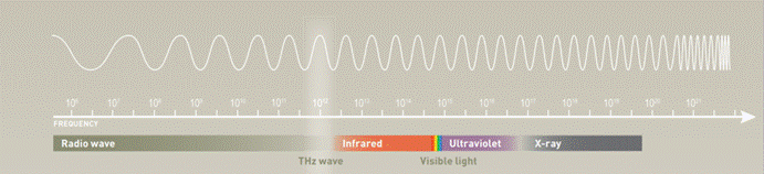 太赫茲電磁輻射波長位于微波與遠紅外光之間,頻率范圍覆蓋0.1-30THz,,又被稱為亞毫米波,是電磁波譜上還未被人類深入研究和開發,但極具學術價值和重要應用的一個頻段。太赫茲波又被稱為“生命射線”,不僅因為其特殊頻段包含生命分子DNA和蛋白質的集體振動頻率,還因為占人體70%的水所具有的氫鍵網絡的動態時間也在皮秒量級(皮秒的倒數即為太赫茲)。