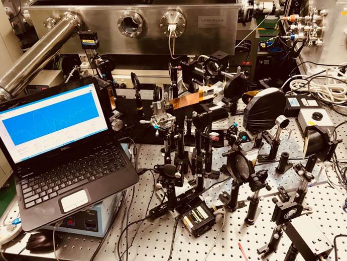 圖 通過啁啾脈沖展寬技術和光譜調制技術獲得0.2mJ, 4MV/cm的低頻高能強場太赫茲脈沖源及其實驗裝置照片